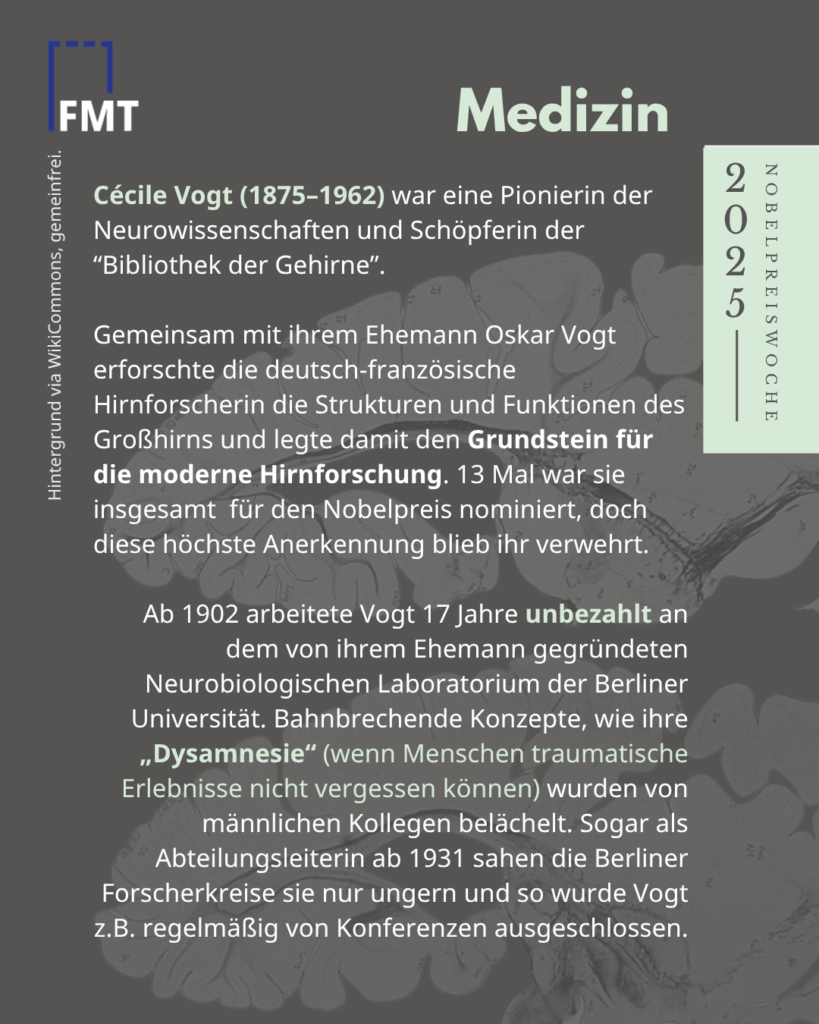 #FrauenMediaTurm #Nobelprize2025 #Wissenschaftsgeschichte #CécileVogt #Hirnforschung #Wissenschaftlerin #Forscherin #WomeninScience