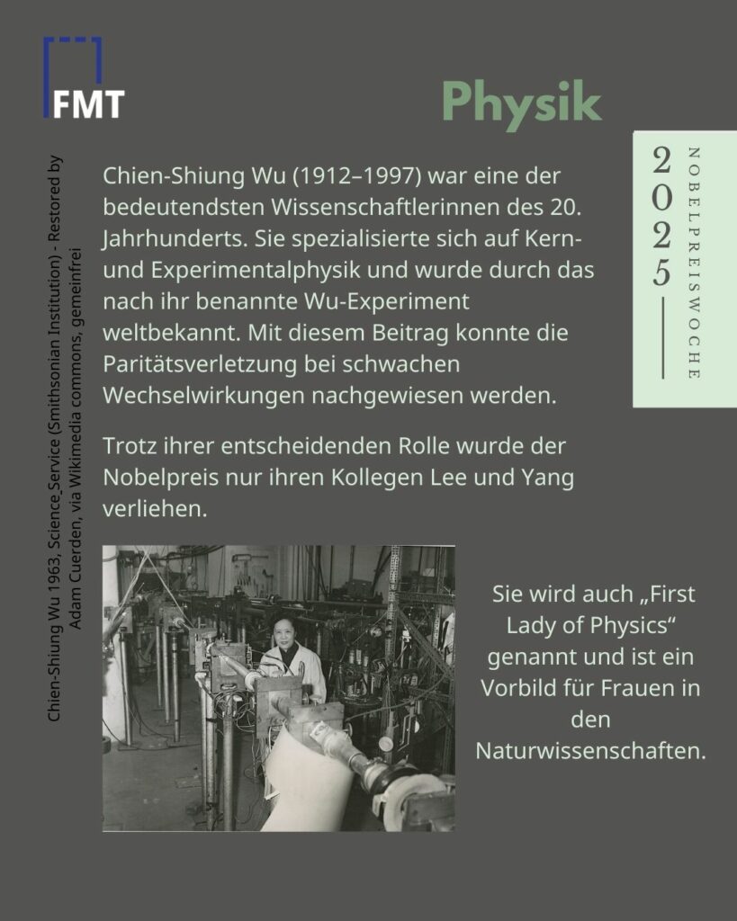#Frauenmediaturm #ChienShiungWu #Physikgeschichte #FrauenInDerWissenschaft #Nobelpreiswoche #Wissenschaftsgeschichte #Experimentalphysik #FraueninderPhysik