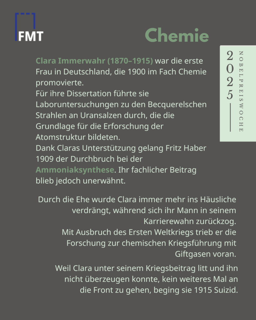 #Frauenmediaturm #Nobelpreisträgerin #ClaraImmerwahr #FritzHaber #Nobelpreis #Pionierin #UnsichtbareLeistung #Chemiegeschichte