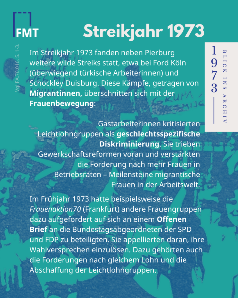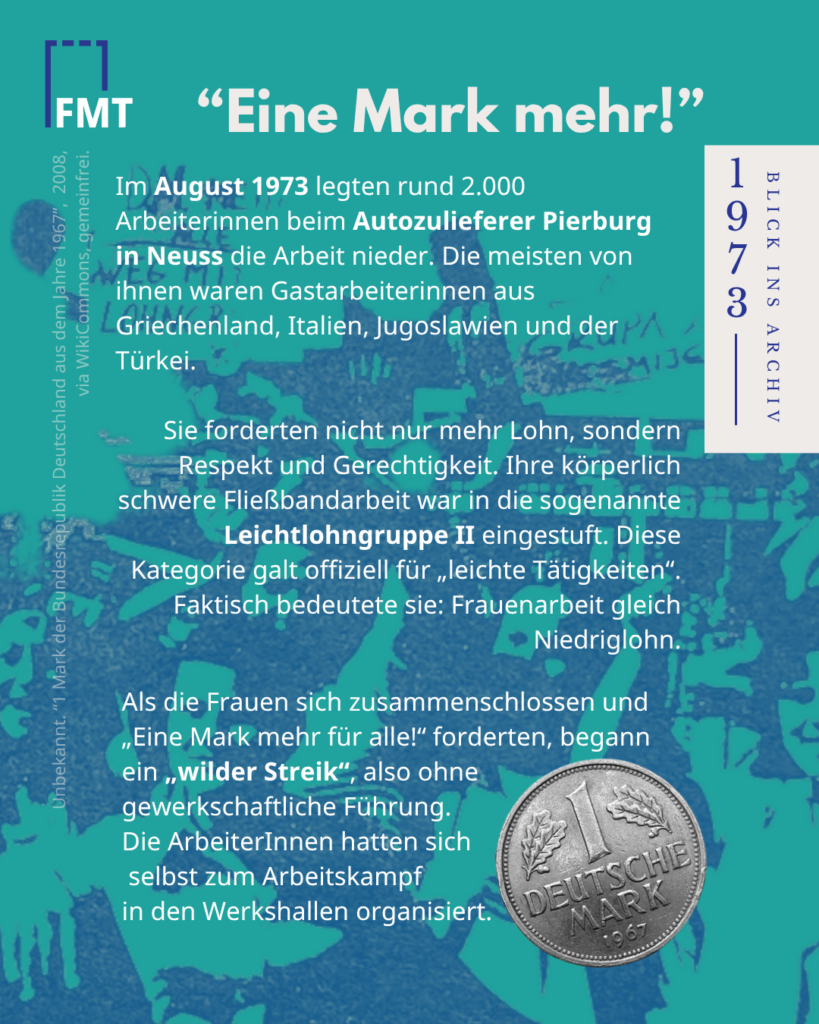 #FrauenMediaTurm #BlickinsArchiv #Leichtlohngruppen #Streik #Migration #Gastarbeiterinnenstreik #Pierburg1973 #WilderStreik #EineMarkMehr