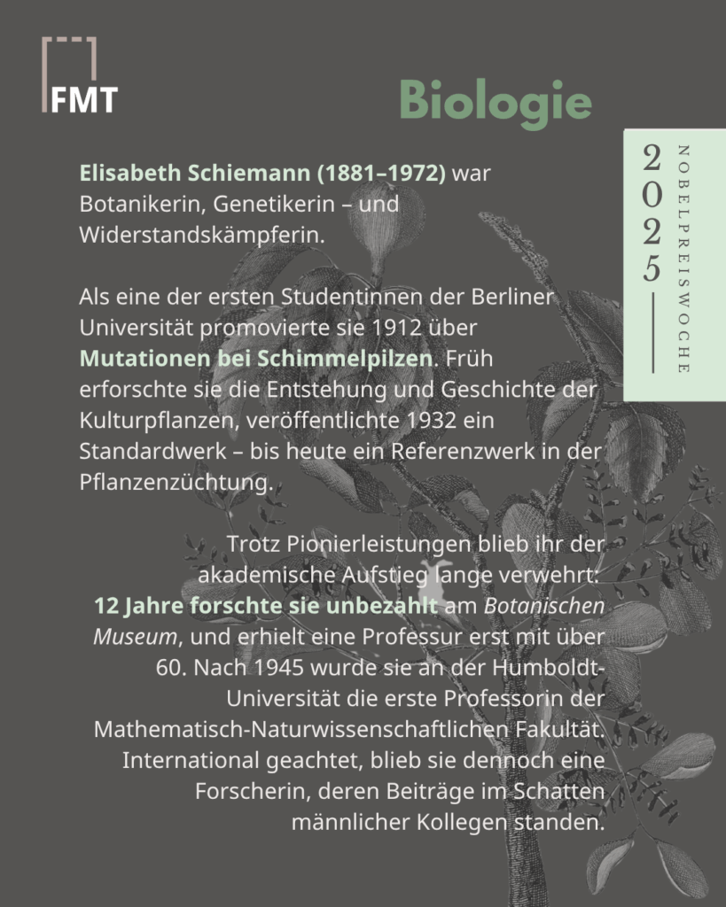 #Frauenmediaturm #Nobelpreis #ElisabethSchiemann #Genetik #Botanik #NobelprizeWeek #Wissenschaftsgeschichte  #Widerstand #FrauenInDerWissenschaft