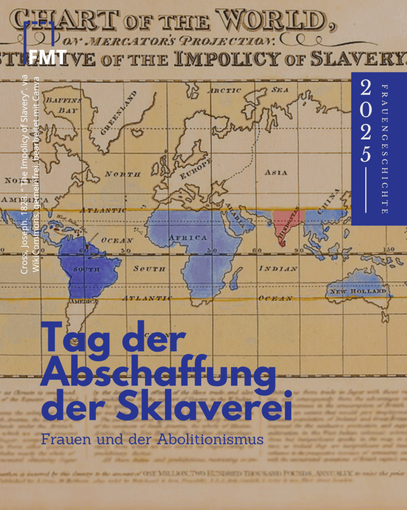 Der 2. Dezember ist der internationale Tag der Erinnerung an Sklavenhandel und dessen Abschaffung. Die deutsche Beteiligung am Sklavenhandel wurde lange Zeit als weitgehend unbedeutend gewertet; mittlerweile wissen wir: auch deutsche AkteurInnen waren tiefgehend in das transatlantische System der Sklaverei verwickelt. Heute stellen wir zwei deutsche Abolitionistinnen sowie eine amerikanische Abolitionistin vor, die sich auf verschiedene Weisen für den Kampf gegen die Sklaverei einsetzten.