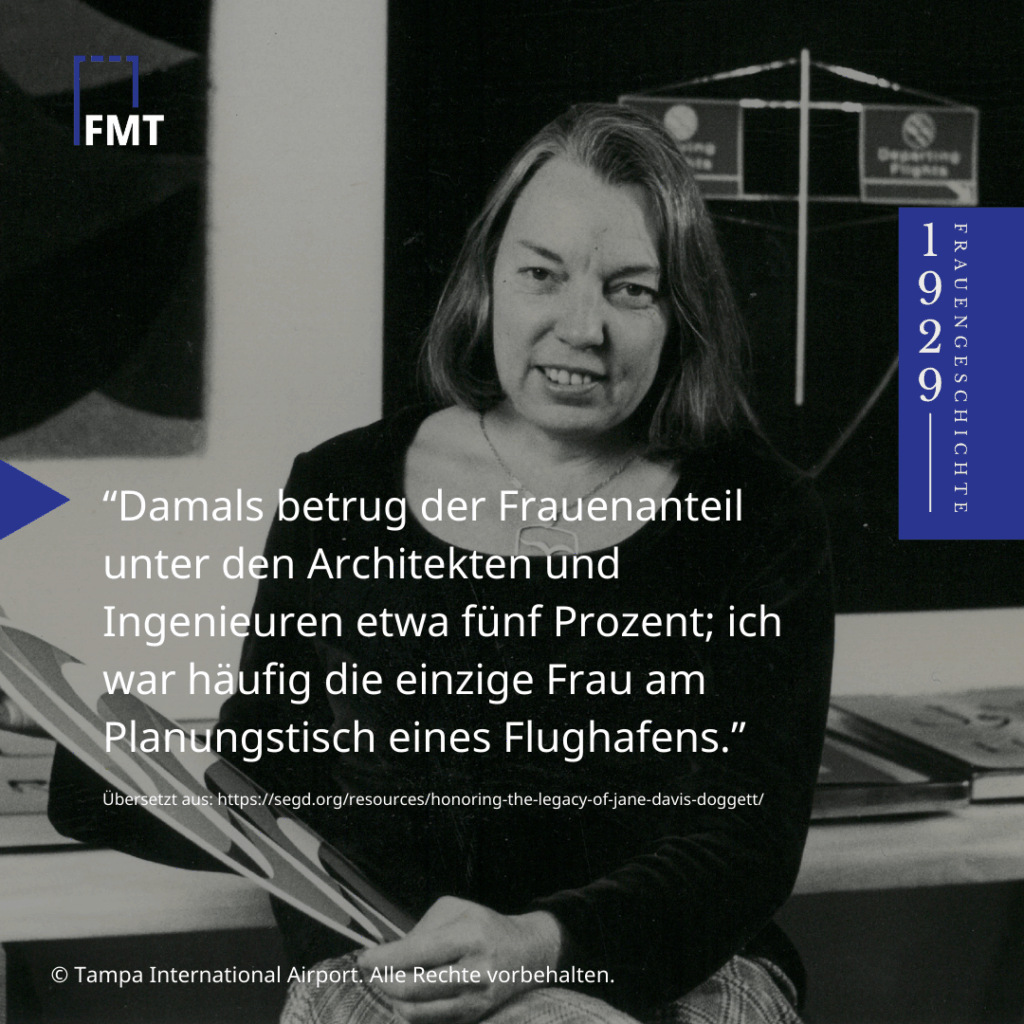 Vor genau 95 Jahren, am 04.11.1929, wurde sie in Nashville, Tennessee geboren. Jane besuchte die Yale School of Art & Architecture in ihrer modernistischen Blütezeit in den 1950er Jahren. 1956 schloss sie ihr Studium mit einem Master ab. Bereits 3 Jahre später erhielt sie den Auftrag, der ihre Karriere fortan maßgeblich formen sollte: Der neuerbaute Memphis Flughafen bat sie, ein Wegleitsystem für seinen rasant wachsenden Publikumsverkehr zu entwickeln. Schon bald folgten weitere Aufträge von großen Flughäfen der Region, denn Fliegen wurde mehr und mehr zum Massenphänomen.