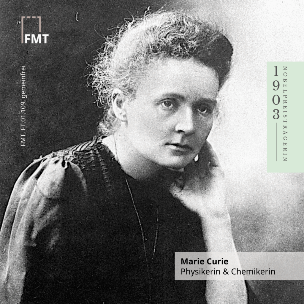 Der Nobelpreis für Physik bekam sie im Jahr 1903 für die Entdeckung der „Radioaktivität“ sowie die dazugehörige Strahlenforschung, u.a. mit Elementen wie Uran, später Radium und Polonium. Ihre Forschung zur Strahlung wurde zur Basis für deren späteren militärischen und medizinischen Einsetzung wie in der Atombombe und der Krebsbekämpfung.