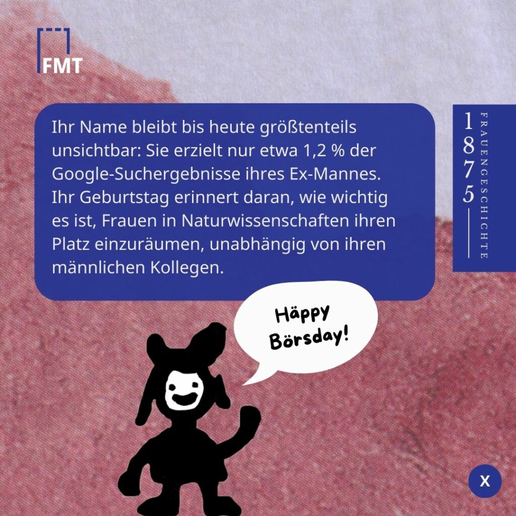 Ihr Name bleibt bis heute größtenteils unsichtbar: Sie erzielt nur etwa 1,2 % der Google-Suchergebnisse ihres Ex-Mannes. Ihr Geburtstag erinnert daran, wie wichtig es ist, Frauen in Naturwissenschaften ihren Platz einzuräumen, unabhängig von ihren männlichen Kollegen.