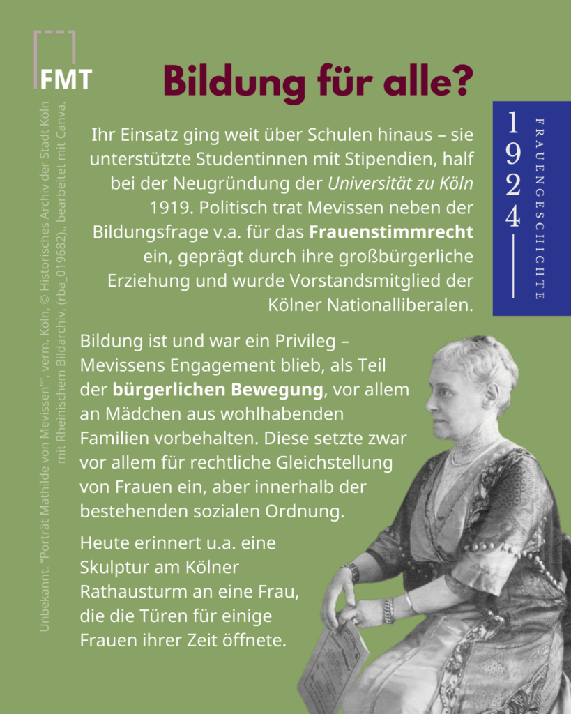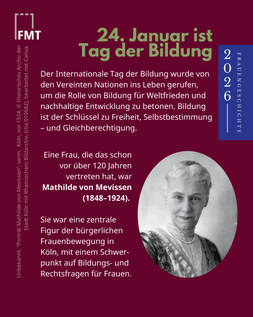 #FrauenMediaturm #Frauengeschichte #TagDerBildung #InternationalDayofEducation #MathildevonMevissen #Frauenbildung #Frauengeschichte #Köln #Bildungfüralle #Bildungsgerechtigkeit #WissenistMacht